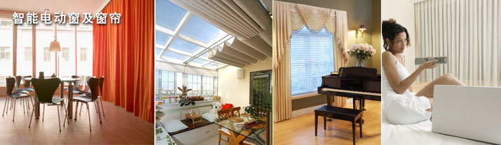 【智能电动窗及窗帘】通过手动或遥控可以对电动窗帘或门窗进行任意操作, 系统接入风光雨传感器时,电动窗帘门窗可以根据要求自动开闭,电动窗帘或门窗还可以定时操作预置和情景 模式联动开闭。