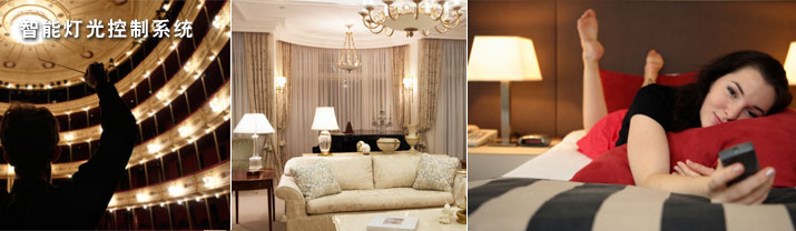 【智能灯光控制系统】通过手动或遥控可以对灯光进行任意操作,不需进行任 何线路改动就可以实现两地开关互控,还可以实现定时、 延时和人体感应自动开关,可一键完成灯光全开全关或灯光场景切换操作,也可通过简单编程预置实现个性化的控制操作。