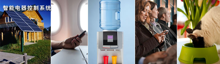【智能电器控制系统】接入智能家居网络的太阳能、电热水器、饮水机、灯光、风扇、音响、等全宅电器,均能使用智能声控伴侣、红外遥控器进行操作、并能对宠物喂养自动管理。还可以通过触摸屏终端或PDA智能手机(PPC),由WIFI无线宽带方式进行遥控操作